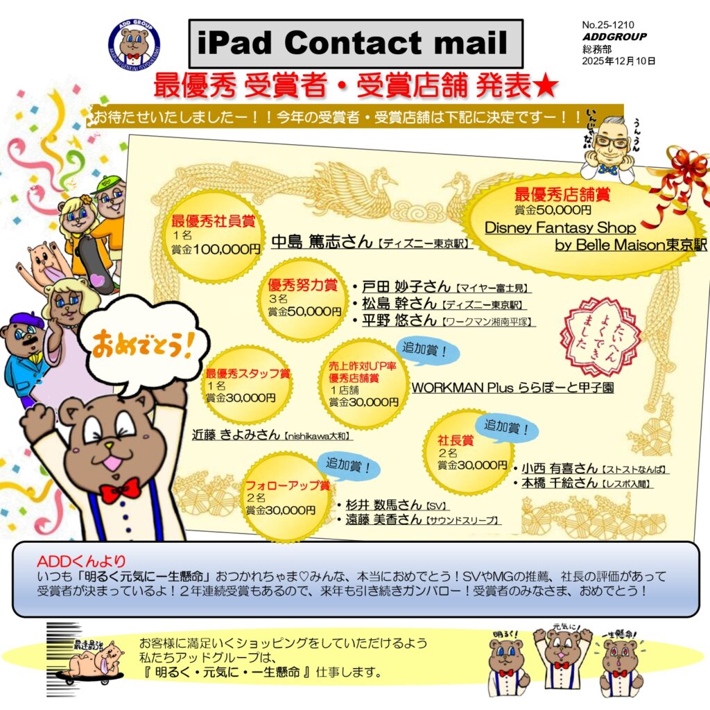 【NO.25-1210】12月10日★最優秀 受賞者・受賞店舗 発表★