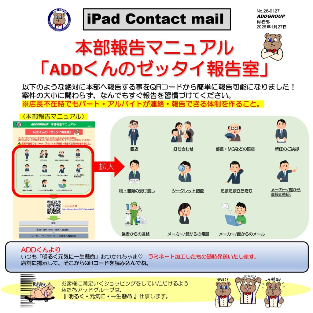 【NO.26-0127】1月27日 ★本部報告マニュアル「ADDくんのゼッタイ報告室」★